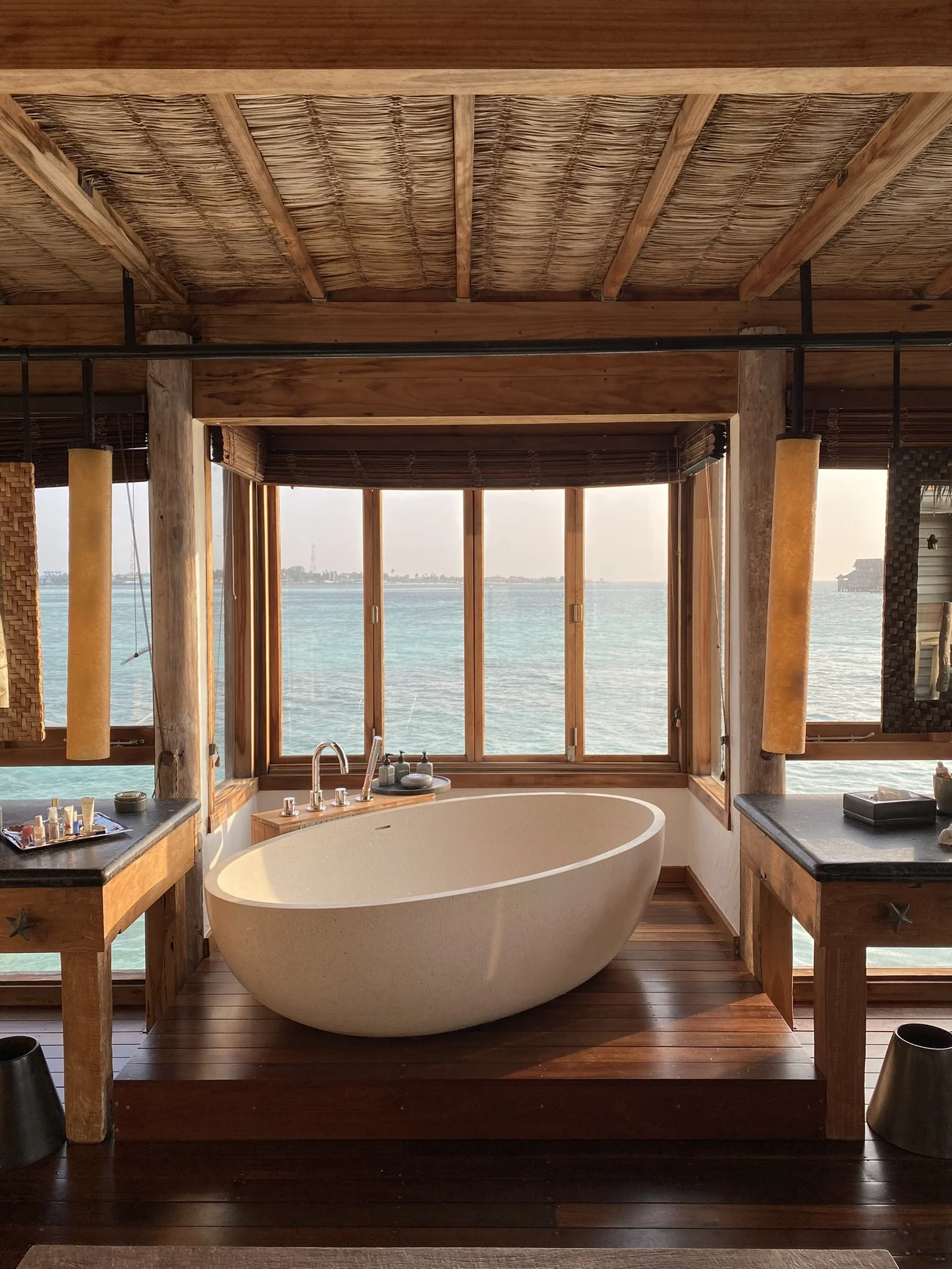 The bathroom was another highlight—a semi-open-air oasis with a deep tub, a glass-walled shower, and direct ocean access. If you’re looking for the perfect blend of luxury and nature, this villa has it all.