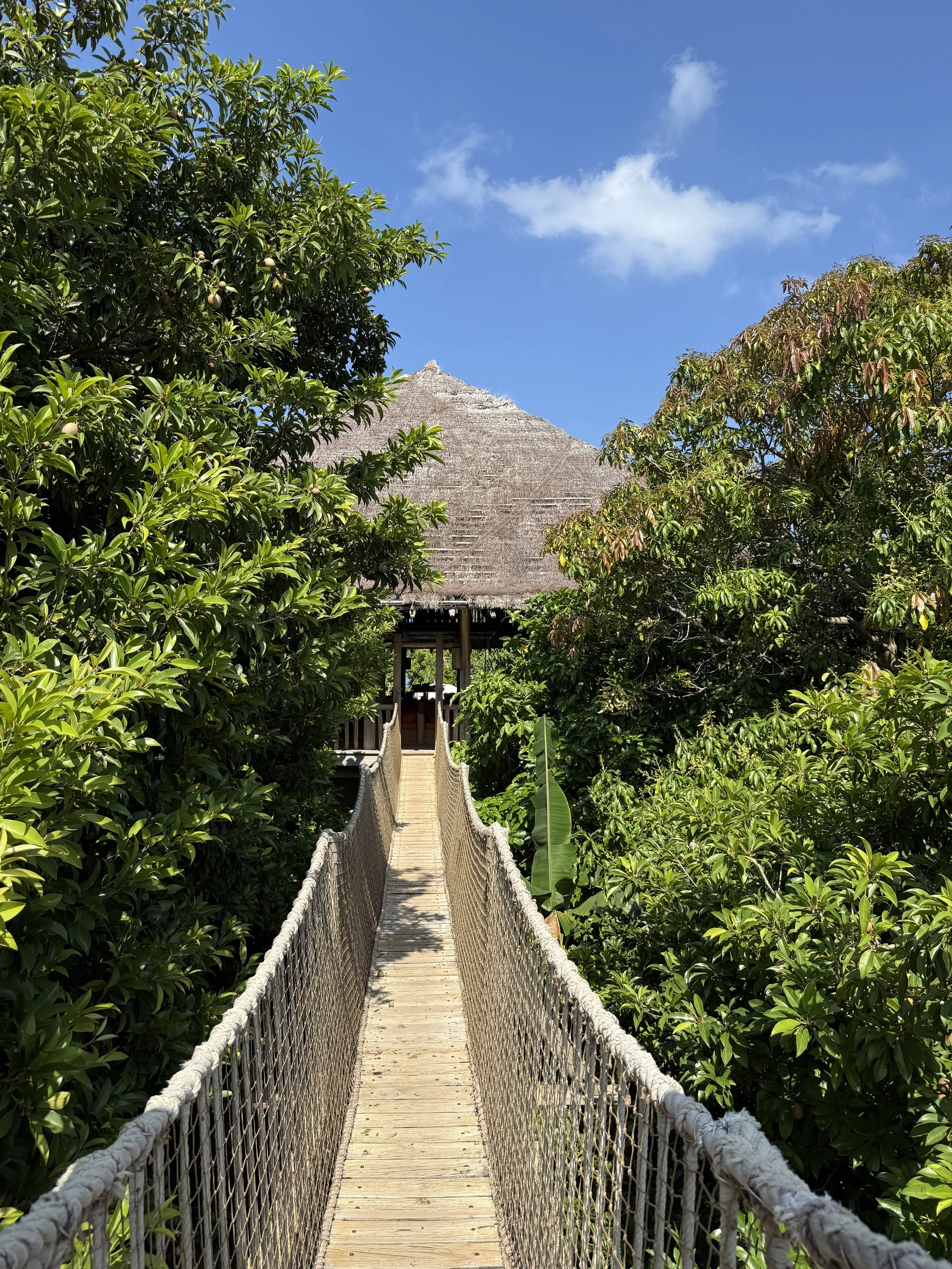 After a warm welcome from our Barefoot Guardian (essentially our personal butler for the stay!), we hopped on bicycles and set off to explore the island. Cycling through the tropical jungle, surrounded by the sounds of nature and birdsong, felt like something out of a dream. The island is almost 4 km long, and cycling around was not only a relaxing way to take in the surroundings but also a great low-impact workout—perfect for balancing out the indulgent meals ahead!