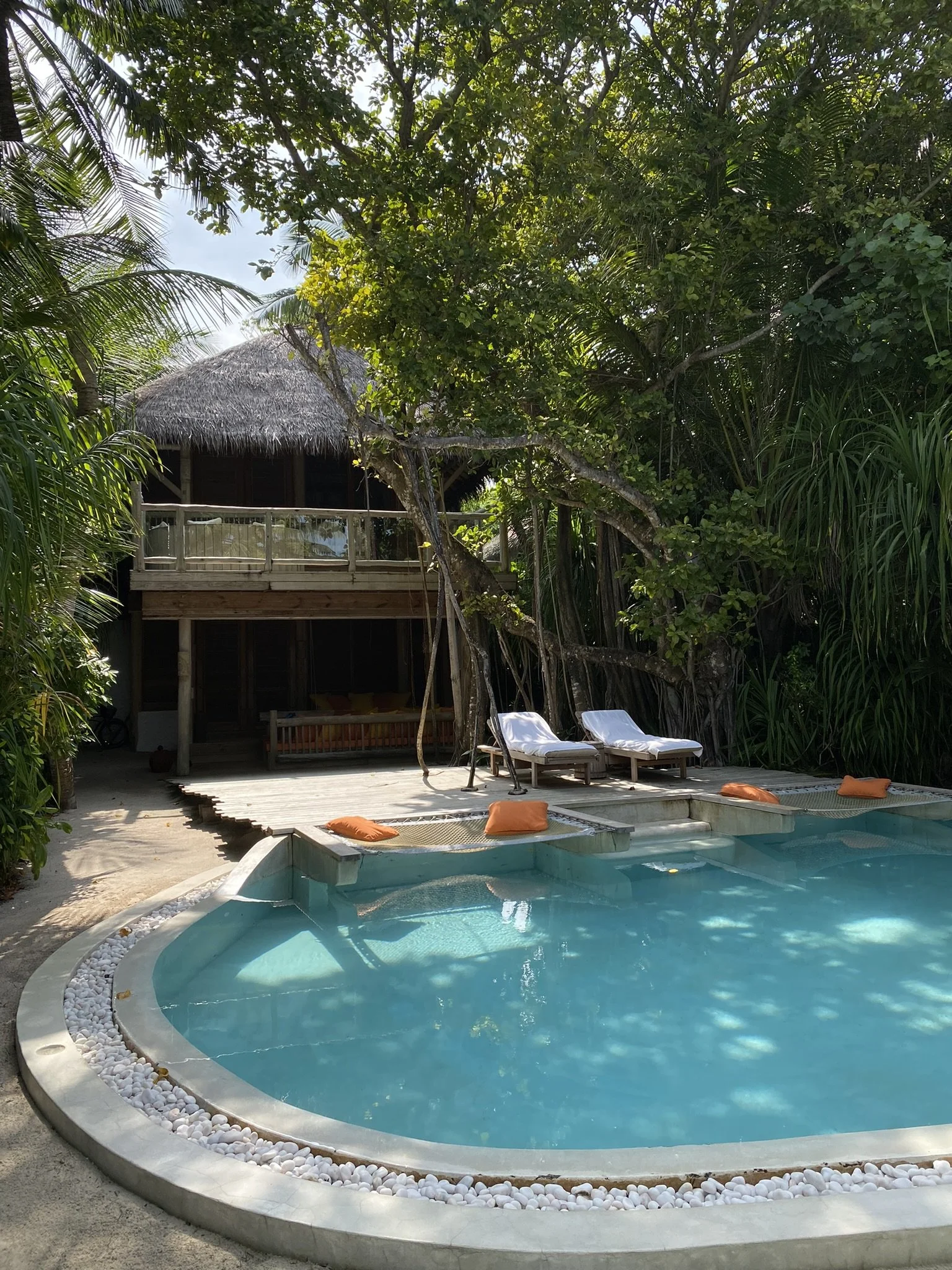 But perhaps the best activity of all? Simply lounging by our beach house. With front-row sunbeds facing the most pristine turquoise waters I’ve ever seen, it was the ultimate way to relax. Our jungle villa provided plenty of space to unwind, with an open-air bathroom perfect for evening baths, surrounded by the calming sounds of nature. At Soneva Fushi, relaxation reaches a whole new level.